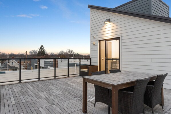 Additional Comforts: - Room-darkening shades for restful sleep - Rooftop patio access with city views