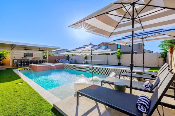 🌟 Resort-Style Backyard: Our entertainer’s backyard has everything you need for a resort-style weekend getaway. Amenities include a sparkling saltwater pool, a Baja shelf for lounging, ample room for laying out in the sun or shade, and an oversized spa to unwind in style.