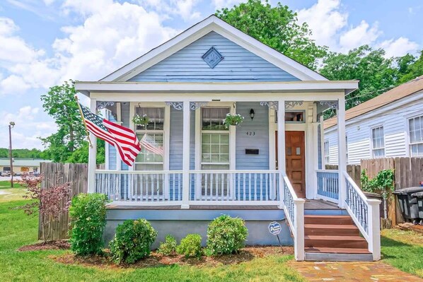 Uptownin eteläpuolella sijaitseva viehättävä pieni mökki on edelleen historiallisella alueella, mutta lähin Airbnb Fort Benningiin. 2BR ja 2x kylpy vetämällä sohvalla, tämä talo nukkuu 6. Keittiö on täysin varusteltu ja siellä on suuri aidattu takapiha, joka sopii erinomaisesti viihdyttävään ja lemmikkieläinten kuljettamiseen! Mukana on myös pesukone ja kuivausrumpu, mikä tekee tästä paikasta täydellisen paikan lyhyille tai pitkille vierailuille. Runsaasti pysäköintitilaa. Paljon historiallista charmia ja läheisyyttä ja mukavuuksia ei voi voittaa!Söpö eteinen kuisti johtaa avoimen konseptin olohuoneeseen ja keittiöön / ruokailuhuoneeseen, joka kulkee talon pituuden.