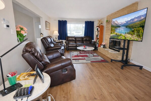 Make yourself at home in this 3-bedroom Gahanna retreat. This fabulous house features 2 queen beds, 1 full bed, a cozy office space with a futon, and all the essentials like a full kitchen, washing machine, heating, AC, and WiFi. With 2 bathrooms equipped with a hairdryer, your comfort is our priority. We're happy to assist with any questions while you stay at our charming house. Roku TV's in living room, master bedroom, guest bedroom, and basement. There is one external security camera on adjacent property (my house next door) covering exterior/garage of rental property for guest security/monitoring.