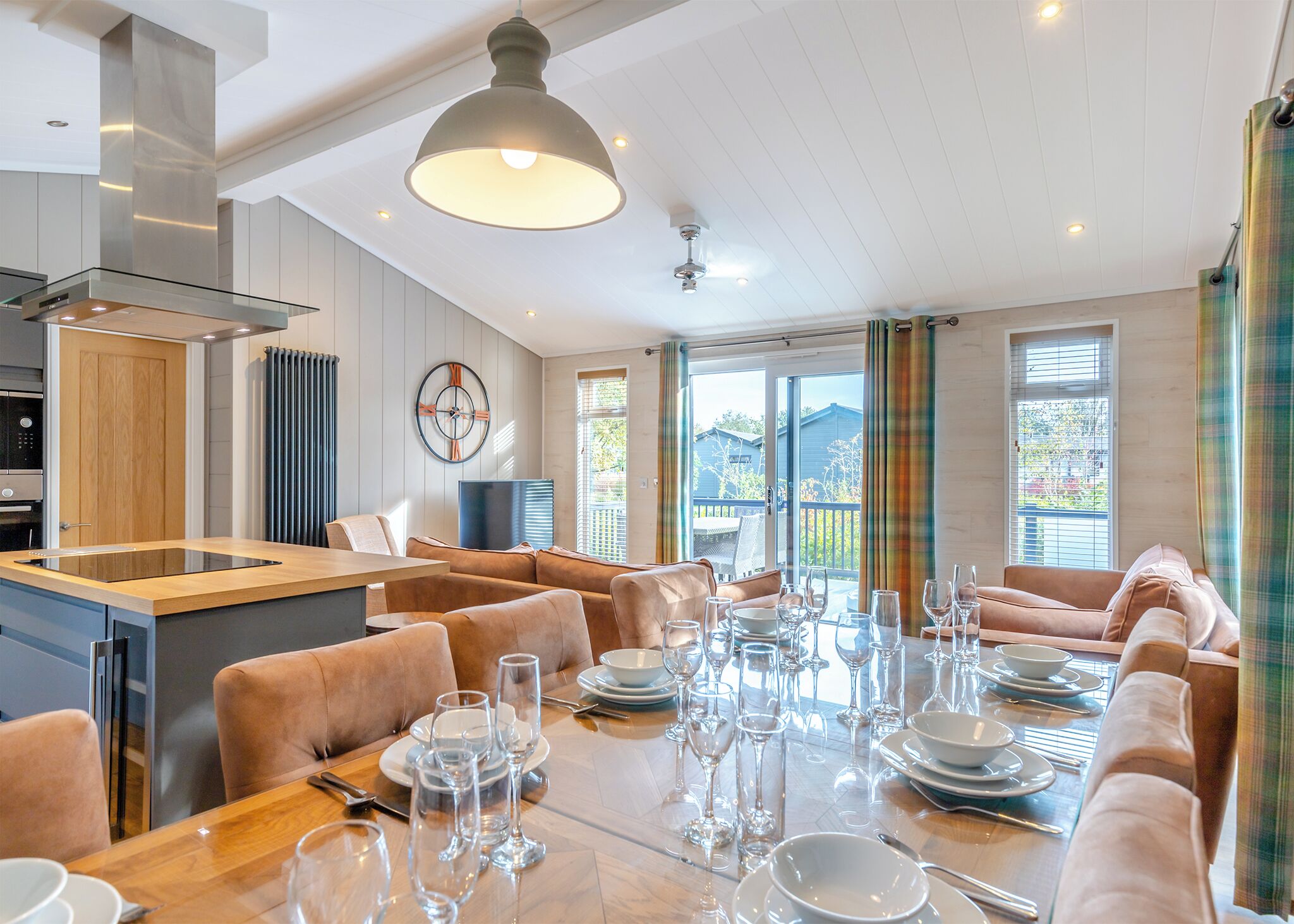 Modern spacious barn conversion with stylish finish. Five bedrooms in total, three double bedrooms and two twin bedrooms. There are two en-suite bathrooms with a shower over the bath, plus a shared bathroom with a shower cabin serving two of the bedrooms. In addition, there is a separate WC with a sink that is accessible to all guests. Fully equipped kitchen with double oven and microwave finished with granite worktops and a large living room with Sky TV and a separate utilities room with washer/dryer. Folding patio doors lead on to a 70ft wooden deck with outdoor furniture and outdoor hot tub. The Stables Retreat has underfloor heating and is ideal for family or group bookings. No pets.. Ladera Retreat Lodges is part of our Autograph Lodge Holidays Collection and enjoys an idyllic rural setting in the heart of the Cheshire countryside. These stunning luxury lodges nestle in 22 acres of an ancient country estate boasting a bluebell wood and providing a haven of peace and tranquility for visitors and wildlife alike.