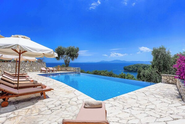 selkeä Jonianmeri yksityisen uima-altaan mukavuudesta.