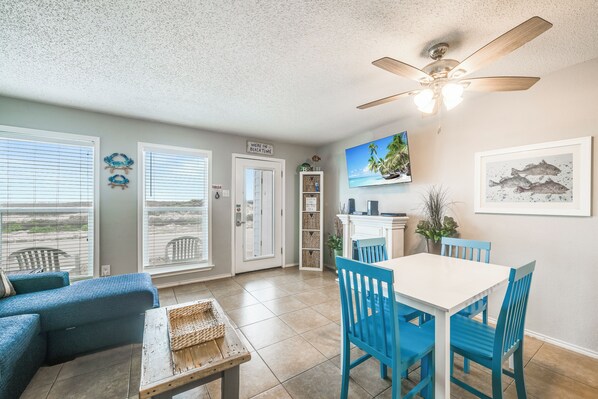 Perfectly positioned on the first floor of a beachfront complex, this relaxing Padre Island escape offers a partial beach view and direct access to the sand and resort-style amenities. Inside, guests enjoy a modern coastal design, an open-concept living area, and a private patio for enjoying the Gulf breeze. Whether you’re here for a romantic getaway or a small family vacation, this spot delivers all the comforts of home just steps from the beach. Pets are welcome for long-term stays—bring your furry friend along for an extended island escape!
