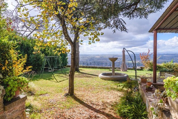 Located just outside the ancient walls of Cortona, in a privileged panoramic position, Dimora Vecchio Duomo is an elegant residence featuring a breathtaking, uninterrupted garden view—where your gaze drifts freely across the Tuscan countryside and its golden sunsets.