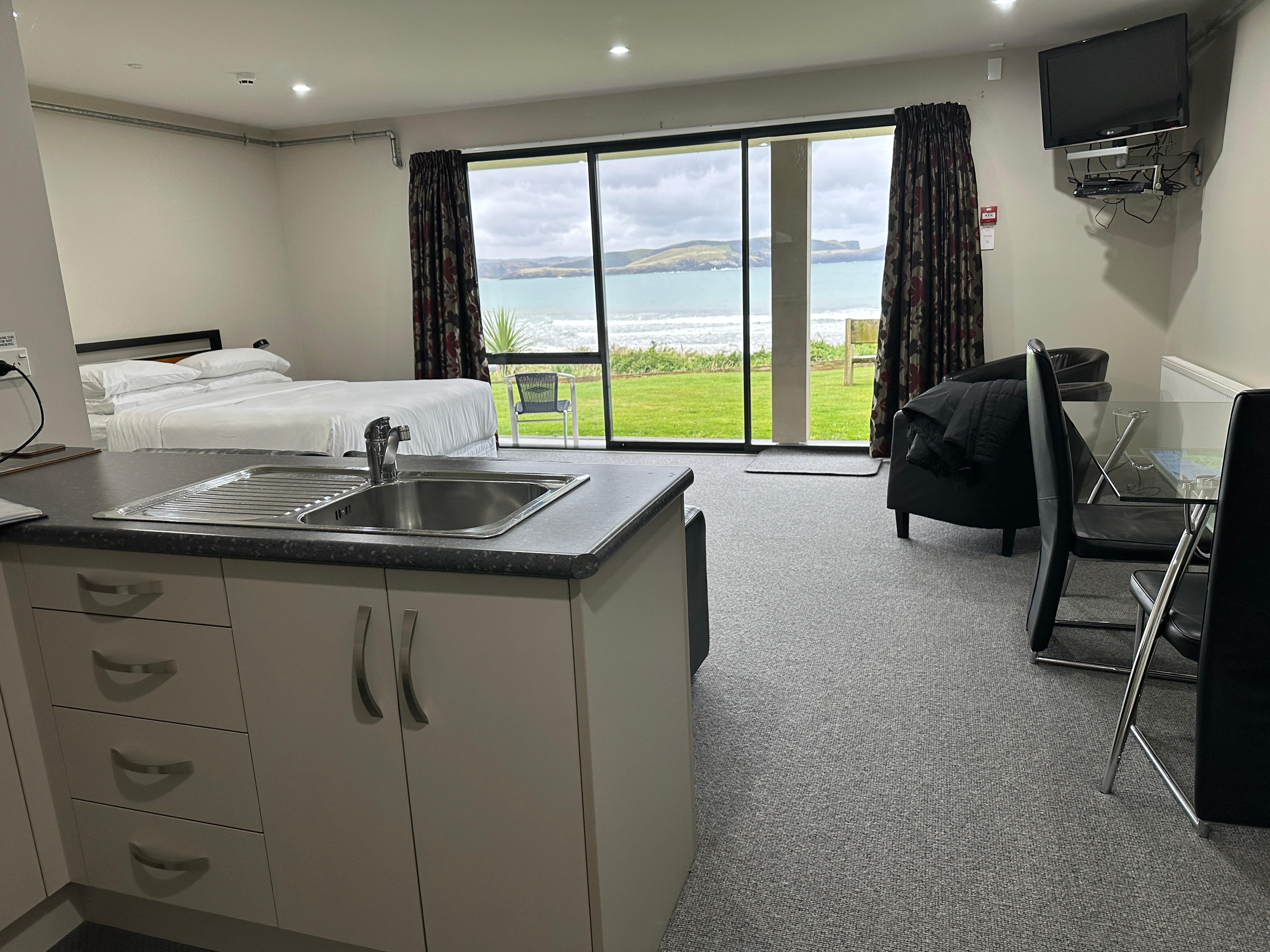Curio Bay Beach ja Curio Bayn kivettynyt metsä ovat 10 minuutin kävelymatkan päässä tästä rannalla sijaitsevasta majatalosta. Porpoise Bay Beach sijaitsee 1 kilometrin päässä.