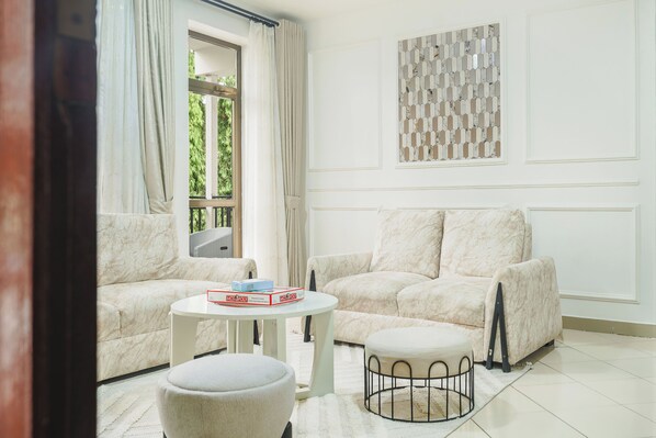 Vous partez en voyage d'affaires, en escapade en famille ou en week-end ? Notre élégante suite de 2 chambres à Mikocheni offre paix, intimité et équipements bien pensés. Profitez d'une cuisine complète, d'un salon confortable avec télévision connectée de 65", d'une connexion Wi-Fi rapide, d'un coin repas, d'une station café, d'un balcon, d'un espace de travail, d'un lave-linge et d'un sèche-linge, et d'un nettoyage gratuit deux fois par semaine.