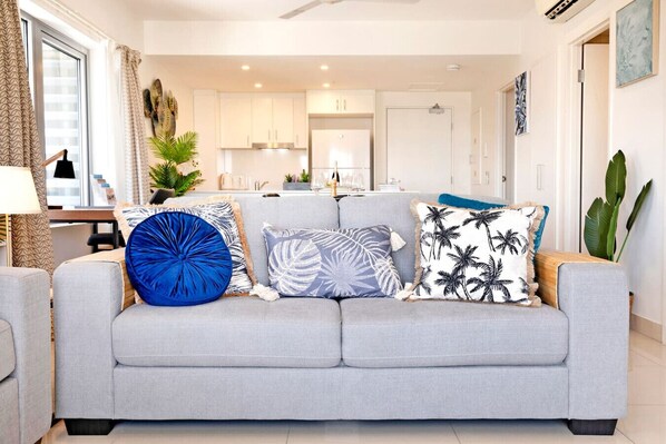Immerse yourself in luxurious comfort as you enter our vibrant living room, a haven designed to envelop you in relaxation and tranquility. Sink into the plush depths of our sofa and unwind as you catch up on your favorite shows on the sleek flat-screen TV. Whether you`re seeking a moment of respite after a long day or simply craving some leisurely downtime, our inviting space provides the perfect backdrop for relaxation and rejuvenation.