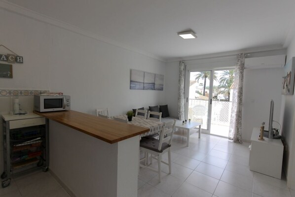 The apartment is just 200 meters away from the beautiful sandy beach of Punta Molins, with pleasant beachfront restaurants like \"En 1º Línea.\" The beach is known for its windsurfing school and is perfect for all ages. There is a Consum supermarket 500 meters away and the Restaurant Fratelli with a wide variety of menus just a few meters away.