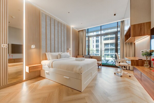 This elegant studio apartment has been fully upgraded to provide exceptional comfort, featuring a calming and relaxing interior ambiance that will have guests eager to return.