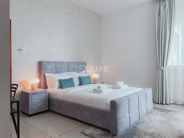 **Master Bedroom:** Enjoy restful nights in the master bedroom, featuring a comfortable bed and a luxurious en-suite bathroom for added privacy and convenience.