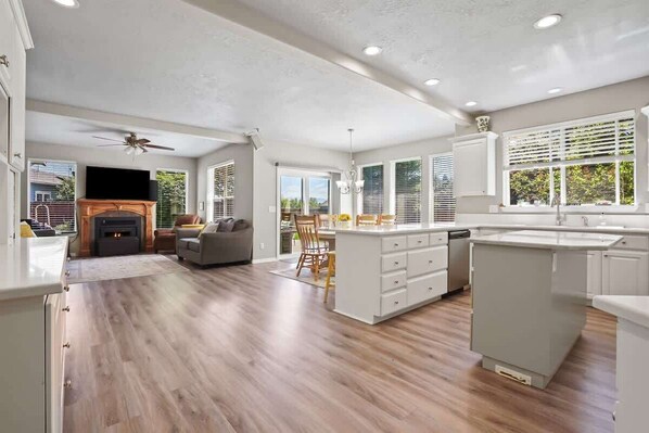 Welcome to our spacious retreat in the heart of Downtown Eagle, Idaho. Spanning 3,530 sq. ft., our home is the perfect destination for large groups, comfortably accommodating over 20 guests. Whether you’re planning a family reunion, a getaway with friends, or a corporate retreat, this home offers everything you need for a memorable stay. Enjoy the privacy of a large corner yard complete with a playground for the kids, a fire pit for evening gatherings, and a BBQ grill with an outdoor dining.