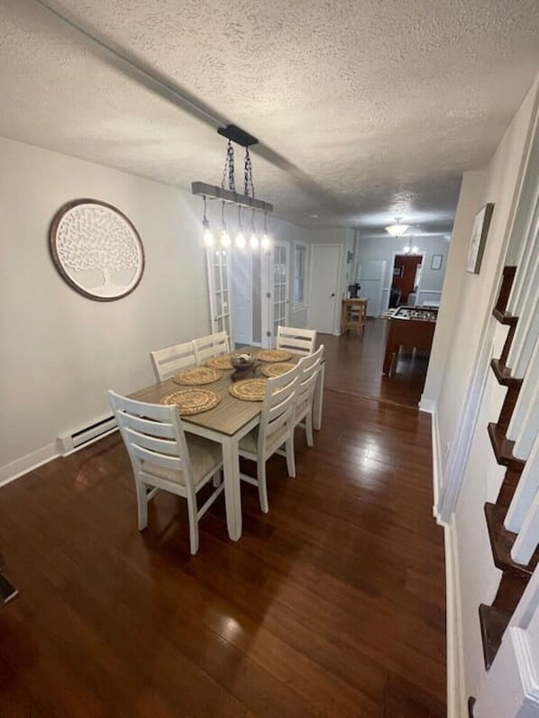 This farmhouse is perfect for a single family or small group of friends! It is located on the creek where you can go down to the water. There are 2 bedrooms upstairs and one shared bathroom. One bedroom has a queen bed and one bedroom has a twin day bed with a trundle bed that can be separated for the top and moved to any side of the room for extra space. There is also a queen sofa bed in the living room.