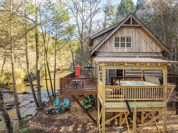 I really don’t want the word to get out that this is not just one of the best cabin rentals in the Ellijay, but maybe even the state! Scott deserves it, though, because everything here was done top notch, no shortcuts and his place is exceptionally well taken care of and comfortable. This cabin also has direct rapid access (small cascades so no problem for the kiddos) and sounds incredible. New hot tub with a new playform, great game selection for rainy days and an entire basement worth of activities including a portable bowling setup. We loved it and I hope we can come back soon.