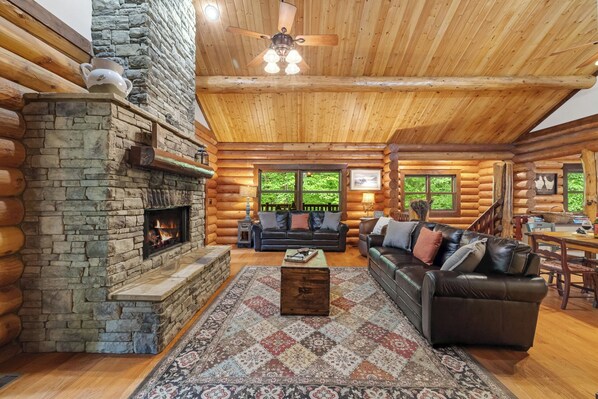 Wake up to birdsong and the whisper of the Cartecay River, just steps from your back door. Spend mornings sipping coffee in a riverside hammock, afternoons conquering the game-room putting green, and evenings soaking under starlit skies in the hot tub. With two floors of well-designed space, luxe kitchen, and every outdoor game you can name, this home is the perfect mash-up of rustic mountain vibes and modern convenience.