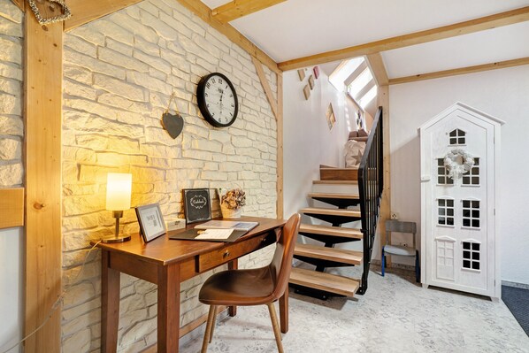 Our idyllic property consists of the main house, which is rented out permanently, and the separate vacation home in the courtyard. It can accommodate four people on 65 m².