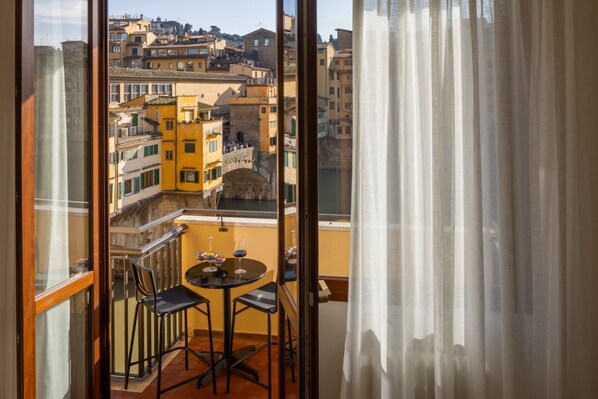 But the real jewel of this residence is the balcony overlooking the majestic Ponte Vecchio, offering a breathtaking view that enchants and fascinates. The Arno flows placidly before the eyes of guests, creating a magical and romantic atmosphere.