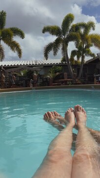 Kyllä, tässä majoituspaikassa on ulkouima-allas. Uima-allas on käytettävissä klo 6.00–18.00.