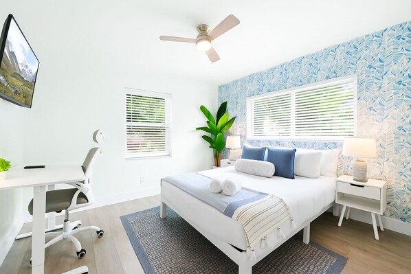 ✸Bedroom 2: Queen bed, Smart TV, dedicated work desk.