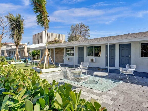 Welcome to Pelican Cove, managed by Stay Hospitality. Our cozy studio and one-bedroom apartments offer the perfect blend of comfort and convenience, just steps from the pristine sands of Pompano Beach. Each thoughtfully designed unit features a well-equipped kitchenette, inviting living spaces, and private outdoor areas, including back patios and front seating on lush turf. Immerse yourself in the vibrant local scene with nearby dining, shopping, and entertainment options. Experience coastal living at its finest—book your stay at Pelican Cove today!