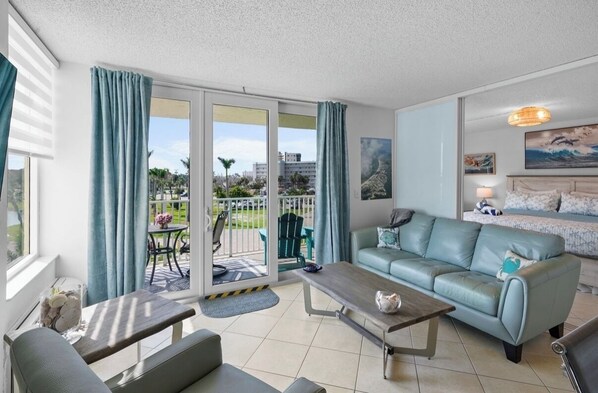 The condo was immaculate and very well stocked. Great beach chairs, umbrella and best of all a beach cart to make it easy to haul to the beach (which is super close BTW). The slider separator from the bedroom was a really nice feature so my husband could watch golf in the living room while I napped in the bedroom. While this is an efficiency, it really feels like a full one bedroom apartment. Kitchen had nice pots and pans, appliances, utensils and cutlery. I really appreciated that there were ample staples (S&P, olive oil, spices, etc.) That's rare in many rentals and we were grateful for it. Cindy (the host) was incredibly responsive - answered emails and messages within 10 minutes or less. And she's thought of everything you would need for an excellent vacation! Location could not be better - just steps from a gorgeous beach, lovely pool, tennis, etc. The grounds and building are VERY well kept and just lovely. We will book this property again and hopefully next time for two weeks.