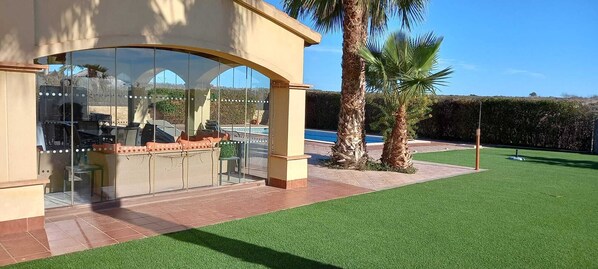Huvila, jossa on yksityinen uima-allas ja keittiö