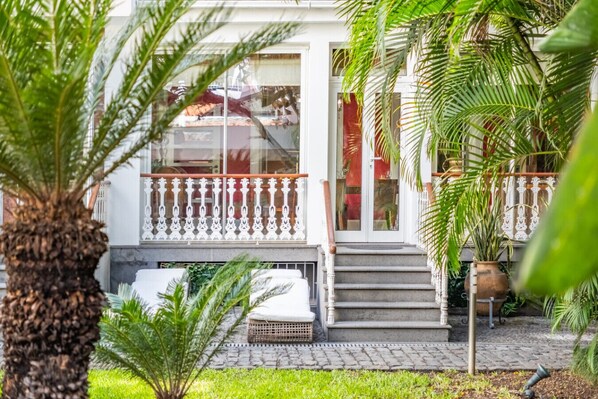 Its most distinctive feature is the large, private tropical garden, a hidden oasis in the capital. Surrounded by mature foliage and quiet elegance, the space includes a rare, centuries-old wood-fired oven, beautifully preserved, and a tranquil area for al fresco dining.