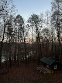 Lake Lanier sijaitsee muutaman askeleen päässä tästä järvenrannalla sijaitsevasta mökistä. Chestatee Golf Club ja Chattahoochee Golf Club sijaitsevat 15 kilometrin päässä. Regal Dawson ja North Georgia Premium Outlet Mall (ostoskeskus) ovat myös 20 kilometrin päässä.