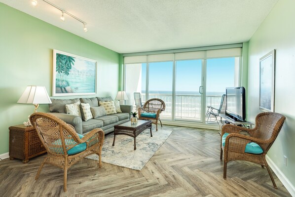 Situated on the east end of the island, our beachfront condominium is near the intersection of the seawall and the main entrance to the island. Enjoy easy access to the Seawall and historical district’s parks, shopping, museums, trendy cafes, and cultural hotspots, making your stay as comfortable and customizable as you desire. There are no meters or other hassles of street parking here as parking is in a designated lot on the north side of the building, with other overflow parking available if needed. The open-concept living room is flooded with natural light, creating a warm and welcoming atmosphere. With the relaxing view of the beach, it's the perfect space to unwind! Leave your cares, pool towels, and other amenities behind. Our kitchen comes fully stocked with dishes and appliances. Each bedroom has its own bathroom for added privacy. A generous amount of pool towels are provided and can be exchanged at the front desk as often as needed to enjoy the on-site heated pool and hot tub. Other onsite amenities for your enjoyment include tennis and pickle ball courts, shuffleboard, horseshoes, picnic grills, and hammocks. Our management team is committed to ensuring your living experience is smooth, enjoyable, and sure to produce fond memories. Prompt response to maintenance requests and a friendly approach make us stand out.