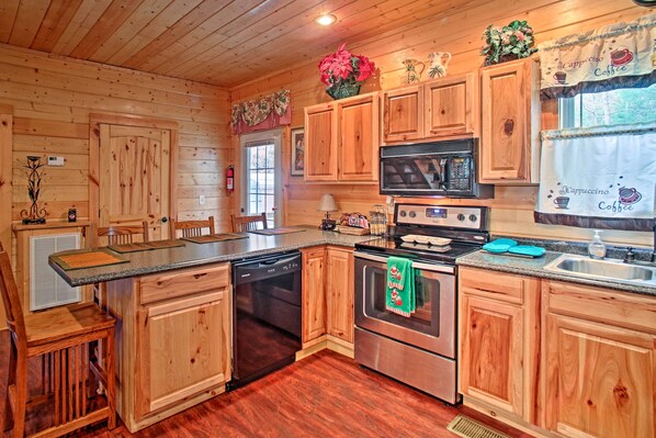 Luonnollinen metsäinen ympäristö ympäröi tätä Gatlinburgin kotia, joka on tupakointien juurella. Maalaismainen tunnelma ulottuu sisäpuolelle, jossa 2 304 neliöjalkaa luonnollista puulattiaa, tummat puulattiat ja vuoriteemainen sisustus toivottaa sinut tervetulleeksi uuteen kotiisi.