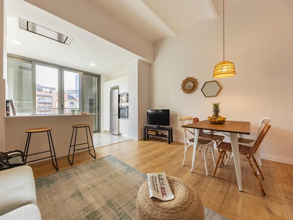 Enjoy Girona from this stylish and fully equipped 3-bedroom apartment, perfectly located right next to the local market Mercat del Lleó and just steps away from Plaça Catalunya, where the historic Barri Vell begins. Bright, modern and comfortable, it’s the ideal place to feel at home while exploring the city. The apartment has three bedrooms—one with a double bed and two with single beds—two complete bathrooms with shower, and a lovely kitchen with views of the Onyar River. The spacious living room features a comfortable sofa, large TV, dining area and plenty of natural light thanks to the big sliding doors. You’ll also find air conditioning, fast Wi-Fi, a dishwasher, washing machine and everything you need for a relaxing stay. Located on the first floor of a recently renovated building with a lift, this apartment offers the perfect combination of comfort, design and location—right in the heart of Girona.