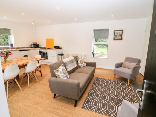 The living areas in the property consist of an open-plan living area with a kitchen with an oven, hob, microwave, fridge, washing machine, dishwasher, dining seating for seven people, and a sitting room with TV. The bedrooms consist of a ground floor double with en-suite bathroom, a king-size with en-suite shower room and a triple with en-suite shower room, along with a cloakroom. Outside, there is a garden with lawn and off-road parking available. Within 3.4 miles, you will find a shop, and within 2.9 miles, a pub, and please note that this is a non-smoking property. Fuel, power, bed linen and towels are all included in the price. Travel cot available. Pets are not permitted. Escape to County Kerry with a stay at Kealduff Lower. Note: This property does not have Wifi