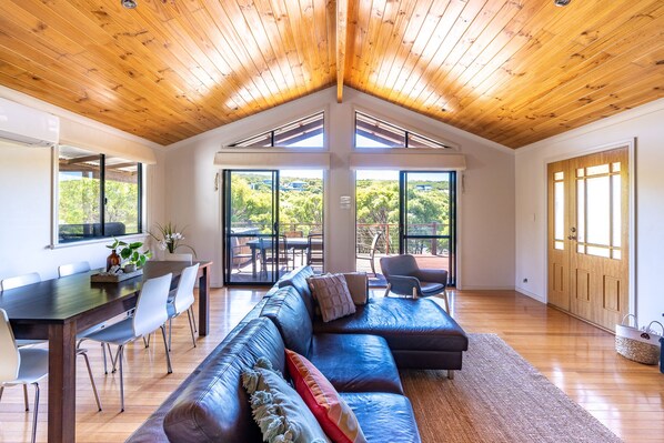 With 3 bedrooms and 2 bathrooms the home comfortably sleeps 6 guests. There is a large open plan living area which opens onto a spacious raised balcony that overlooks the peppi trees - sit back & relax and enjoy your beachside holiday down south in Gnarabup.