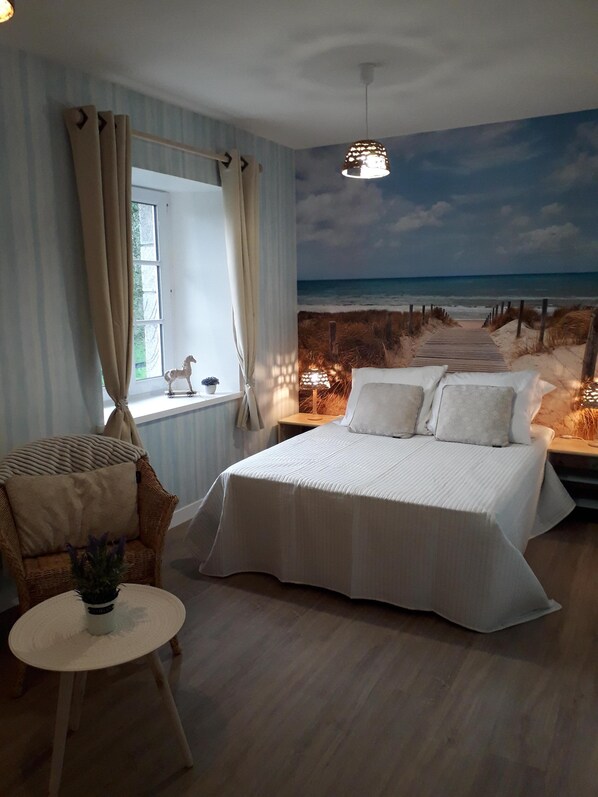 Sijaitsee maaseudun, kaupungin (3 minuutin päässä Coutancesista) ja meren väliltä (10 minuutin päässä merenrantakohteelta Agon-Coutainvillestä), huomaat suuren puiden reunustaman ajotieltä Dauvinerien, entisen vartalon, verkkotunnuksen kivimökki 4 hehtaarin puiston sydämessä, jossa lampaassa on ikirahoja, haikaroita, luonnonvaraisia ankkoja ja kanoja. Muutettu tänään viehättäviksi mökeiksi, se säilyttää karkean, kiven aitouden ja modernin mukavuuden.