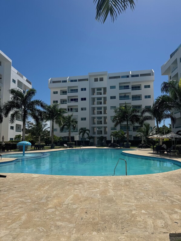 Huoneisto, jossa on yksityinen uima-allas ja keittiö