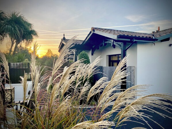 Parc naturel régional des Landes de Gascogne ja Arcachonin lahti sijaitsevat 2 kilometrin päässä tästä valtameren rannalla sijaitsevasta lomamajasta. Biskajanlahti ja Osteritalo ovat myös 3 kilometrin päässä. Gujan-Mestrasin asema on 27 minuutin kävelymatkan päässä, ja Le Teichin asema on 30 minuutin kävelymatkan päässä.