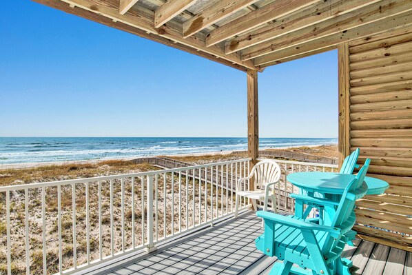 The large covered porch overlooks the beach and provides guests with a shaded spot to enjoy the breeze. Here you can find a private pool that can be heated during the cooler months (additional fees apply) for your use only, a picnic table for alfresco meals, and an outdoor shower for rinsing off the sand after an exciting day of beachcombing and enjoying the sun.