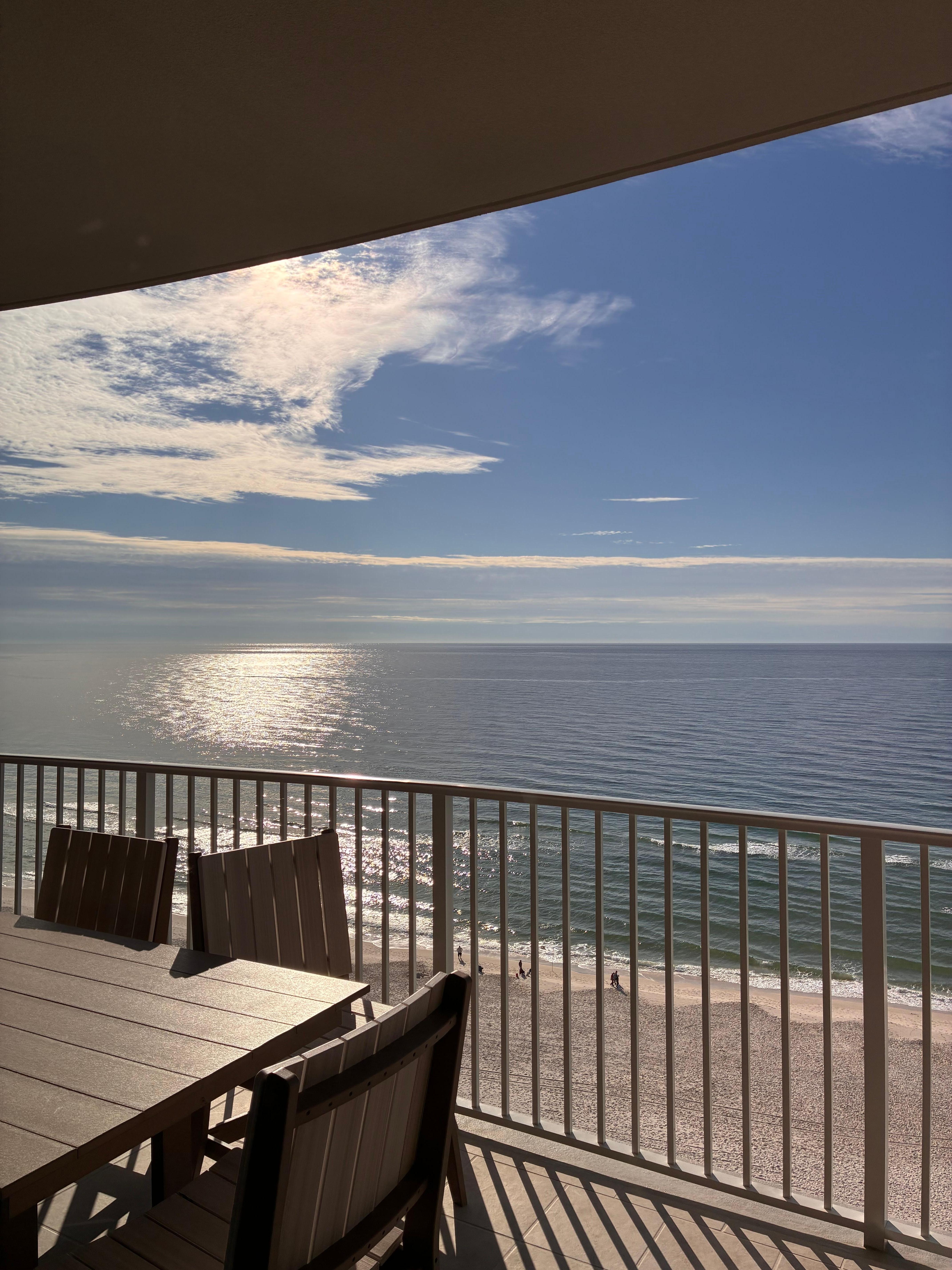 Our condo is perfectly situated on the 14th floor unit with amazing views of the Gulf!! We also have a keyless entry door lock so you do not have to keep up with any keys during your stay! You can enjoy a spectacular view of the Gulf from the balcony or through the floor-to-ceiling windows in the Living room and Master bedroom. With over 2,000 sq ft the unit is very spacious, newly furnished and new to the rental market!!