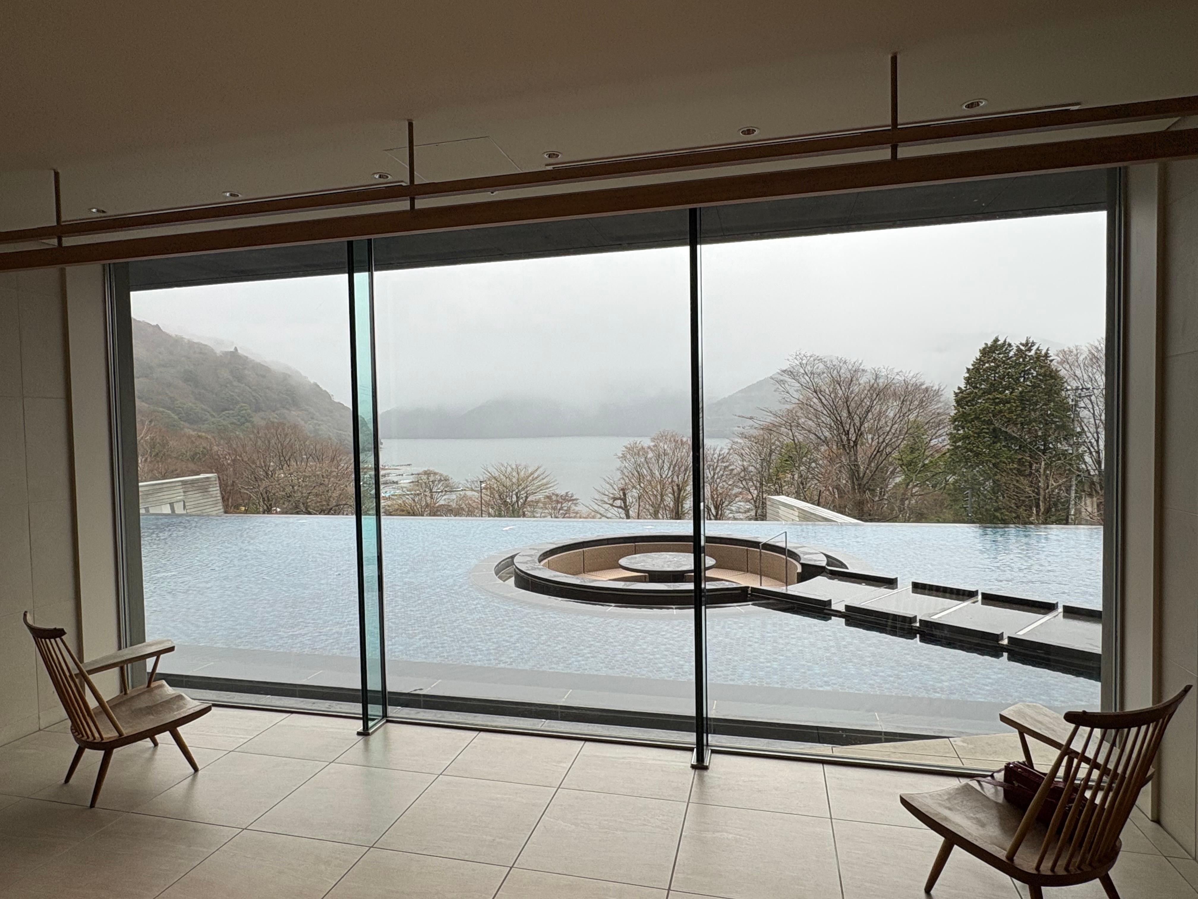 Hotel: gorgeous lobby, foot bath outside lobby overlooking the lake. Easy to book private onsens which were impeccably kept and really nice for a family gathering