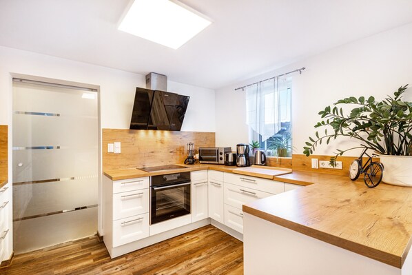 Within just 3 minutes on foot, you reach Rewe, Edeka, a bakery, and a butcher. Numerous hiking trails start right outside your door, and brochures with excursion tips are provided. The house is situated on a hill and offers a wonderful view over the town. Free parking is available at the house, in the garage, or on the street.
