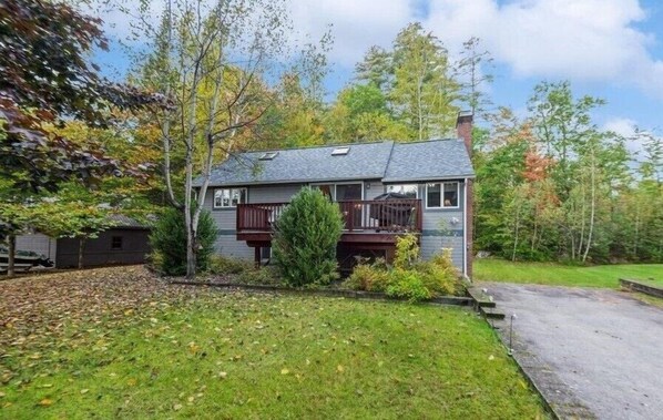 Step outside to a private deck with scenic views, outdoor seating, gas grill, and a fire pit—perfect for morning coffee or evenings under the stars. Close to hiking in the White Mountain National Forest, kayaking on the Pemigewasset River, and local dining and shops, this home is a great base for year-round exploring.