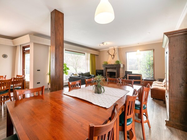 Perfect for large gatherings, this expansive villa at Summio Bungalowpark Herperduin offers an unforgettable stay for up to 24 guests, including 4 toddlers. Spread across three floors, it combines comfort, luxury, and togetherness in the heart of North Brabant’s beautiful Herperduin nature reserve. The interiors are warm and inviting, featuring ten spacious bedrooms, three bathrooms, and a cozy living room with an open fireplace where everyone can gather after a day outdoors. The fully equipped kitchen with dining area, two dishwashers, and plenty of seating makes cooking and shared meals a joy.