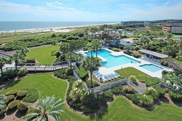 Sea Cloisters has a perfect oceanfront location for views and beach access. You can ride your bikes on the beach, fly a kite, get a tan, go fishing or take a relaxing walk all from the comforts of Sea Cloisters. There is a community pool on site for the entire family to enjoy. There is a kid pool too beside the large family pool. Easy walk to the beach. Sea Cloisters is located in the Folly Field area of Hilton Head. The Westin Resort and Marriott Barony Beach club are just down the beach. You can rent beach chairs and umbrellas from the lifeguards on the beach.