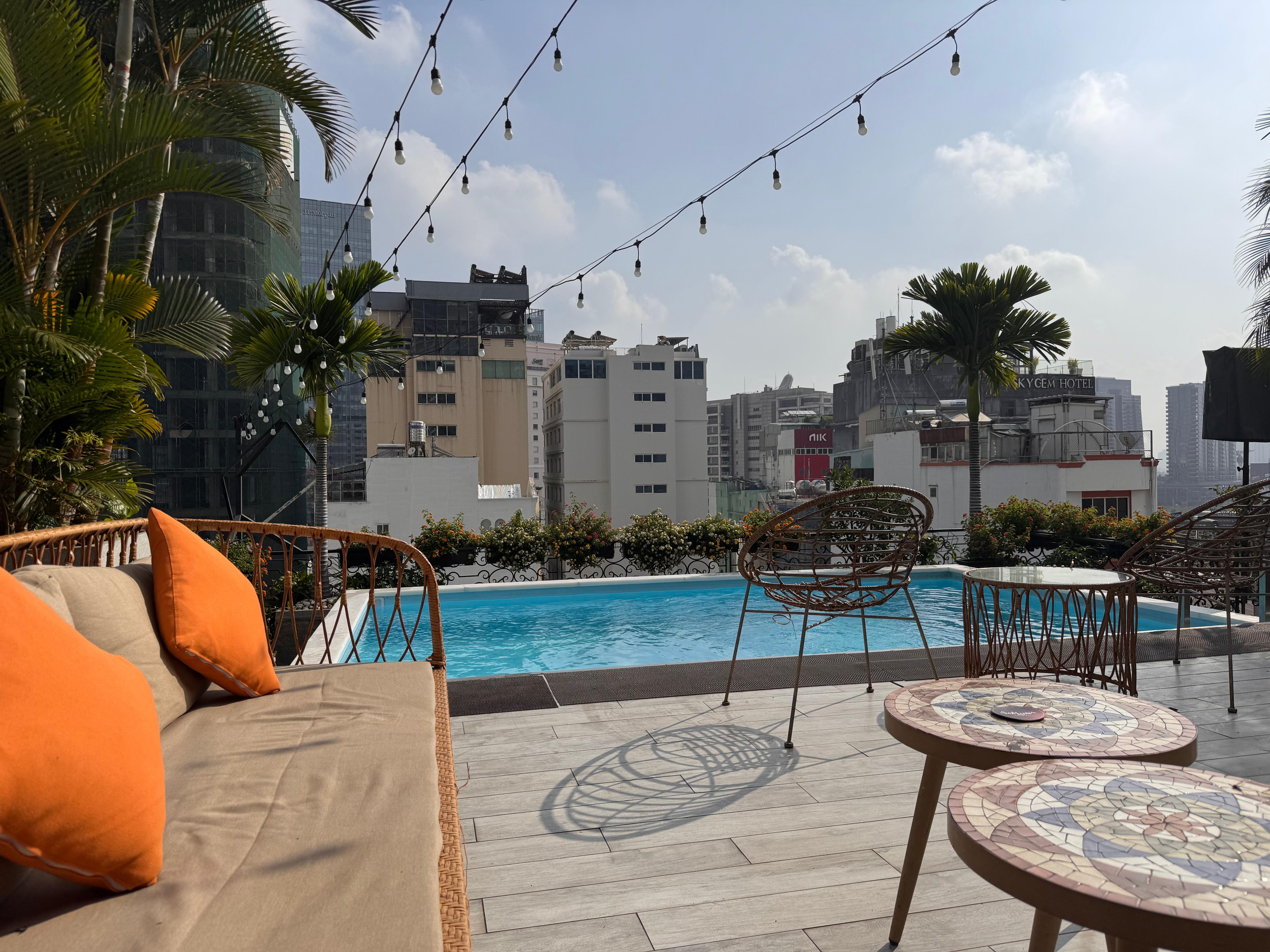 Trevligt hotell med vänlig personal. Mycket bra städning. Vårat rum var väldigt litet men priset billigt och därför helt ok. Saknades förvaring i rummet, enbart två galgar på en öppen stång och väldigt svårt att förvara resväskan på ett bra sätt för att enkelt kunna få tillgång till sakerna i väskan. Väldigt god frukost. Litet gym i källaren med lite redskap. Poolen på taket var ren och fin med två soffgrupper men fanns inga solstolar vilket jag sakna.