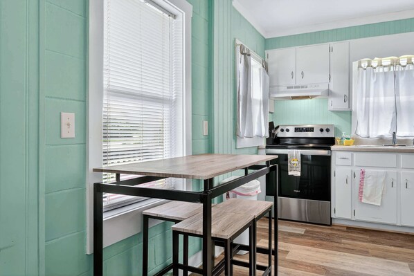 - Well-stocked kitchen with dining table for 4