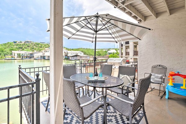 Look forward to endless lake days and stunning Thanksgiving Mountain views from 3 spacious decks at this family vacation rental in Horseshoe Bay! Nestled in a quiet cove, the 3-bedroom, 3.5-bath townhome makes it easy to maximize your time outside. Fish off the dock, take the kayak out for a spin, and tee off at nearby world-class golf courses. Don't wait — gather up your crew and dive into the natural wonders of Texas!
