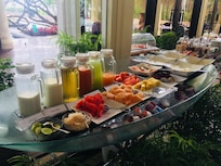 Rannalla oleva hotelli, jonka tarjontaan kuuluu 4 ravintolaa ja 2 ulkouima-allasta