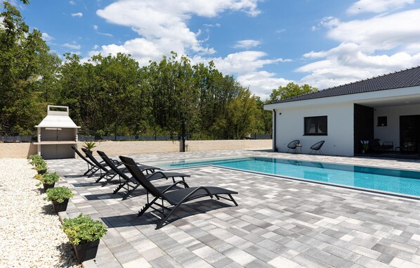 Loma-asunto, jossa on yksityinen uima-allas ja keittiö