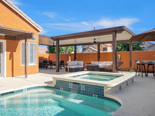 • Game Room w/ pool table, foosball, darts board, and a TV seating area. • 15 minutes to Coachella • 30 minutes to Palm Springs • Heated pool and hot tub • Close trails and parks • Vibrant Local Cultuere • Stainless steel appliances • Five Spacious Bedrooms • Sleeps 16 • 2,600 Sq ft