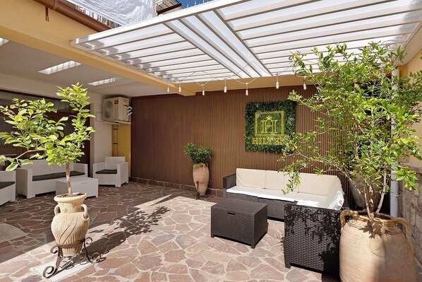 Villa Hilten in Isola delle Femmine offers a shared luxury outdoor relaxation area and convenient amenities such as an electric vehicle charging station in the nearby residence, bicycle storage, and shuttle service to and from the airport and train station.