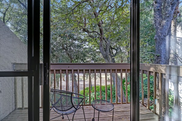 Enjoy the views of Red Maple Lake and the new Omni Short Course from the villa! Stretch out on the back patio and soak in the quiet natural views. There is plenty of seating and a grill provided.